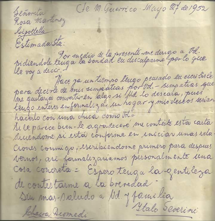 En la misiva, el romántico Ítalo le confiesa a Rosa su "simpatía" y le pide comenzar junto a ella una relación seria y formal.