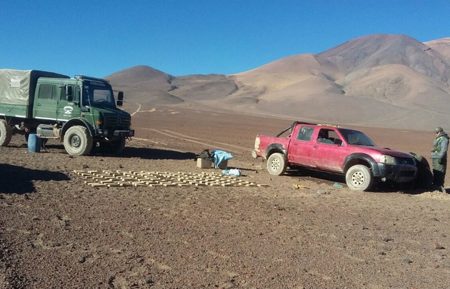 “Los sujetos llevaban una mochila con miguelitos y 109 kilogramos de marihuana en una camioneta que había sido robada en Chile”, indicó.