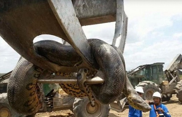 Los trabajadores, sin embargo, aseguraron que la anaconda estaba muerta cuando la encontraron enroscada en la excavadora.