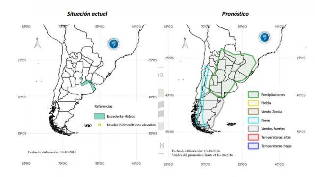 Según anuncia el SMN, para la región, se espera que "a partir de hoy y por lo menos hasta el lunes 17 de octubre, se generen áreas de lluvias y tormentas".