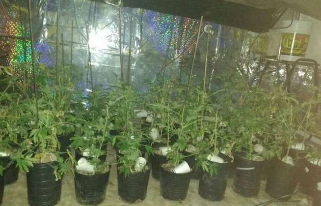 Peo al arribar al lugar, constató que en una habitación, se encontraban 48 plantas marihuana, 57 macetas con plantines de cannabis sativa, un cajón con brotes secos y productos químicos.