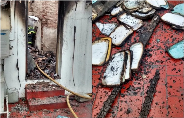 Fuentes de la investigación informaron que los mayores daños se generaron en el primer piso del edificio de dos niveles, mientras que en la planta baja se habían encontrado bidones con combustible que no se llegó a quemar durante el incendio.