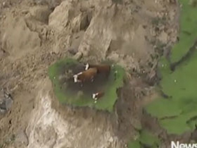 Tres vacas quedaron aisladas en medio de la nada, luego del terremoto de 7,8 grados en la escala de Richter registrado ayer en Nueva Zelanda.