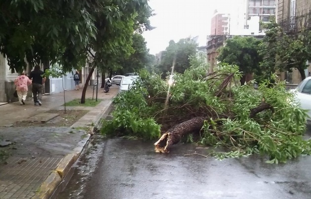 La tormenta provocó voladura de techos, caída de postes y árboles y anegamiento de calles en distintos puntos de la ciudad. Defensa Civil municipal informó que cayeron 25 milímetros en sólo 10 minutos.
