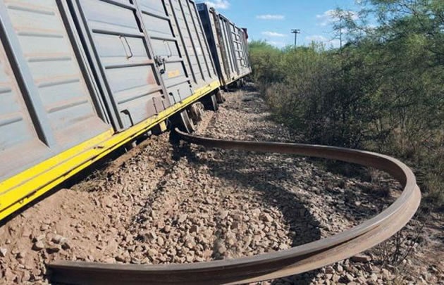 "Las vías se desplazaron más de dos metros hacia la izquierda (con dirección norte a sur) lo que ocasionó que al paso del tren, alcanzaron a pasar siete vagones y a partir del octavo hacia el final de la formación descarrilaron, sin que lleguen a caerse, pero sí se enterraron en la caliente tierra suelta", contó.