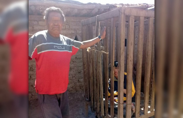 Es discapacitado y hace años su familia lo tiene enjaulado